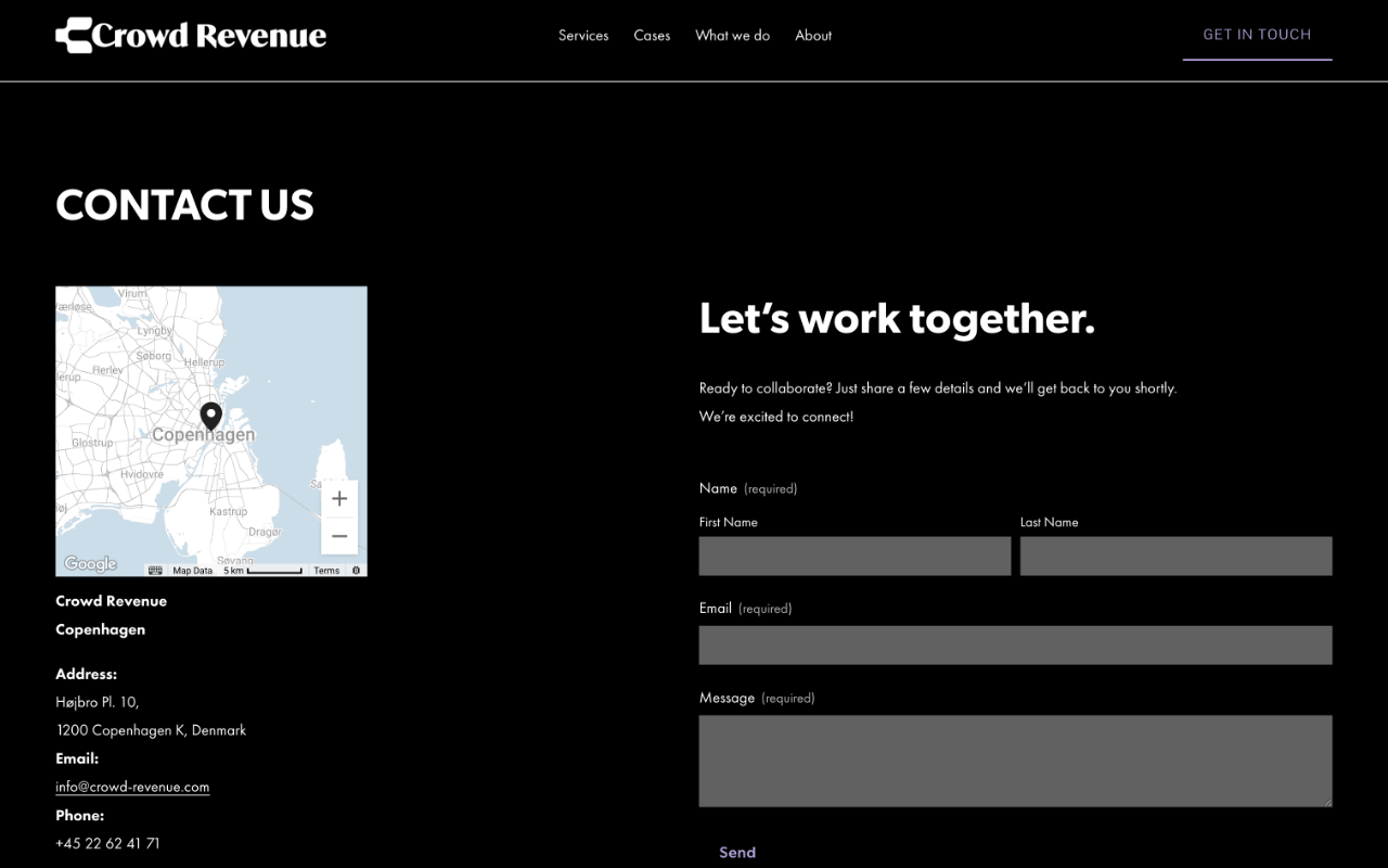 Crowd Revenue needed a new visual identity and an update to their previous website which only had a bit of contact info.